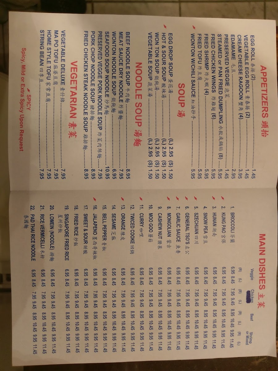 Wonton Soup: Choice of large or small, traditional Chinese dumplings in broth.